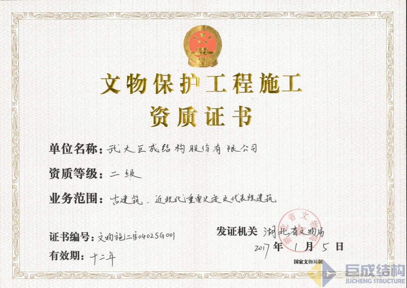 文物保护工程勘察设计资质证书乙级