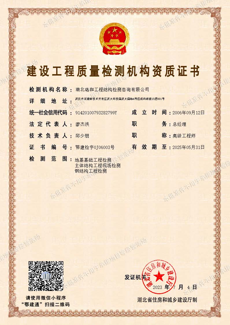 建设工程质量检测机构资质(地基基础、主体结构、钢结构)
