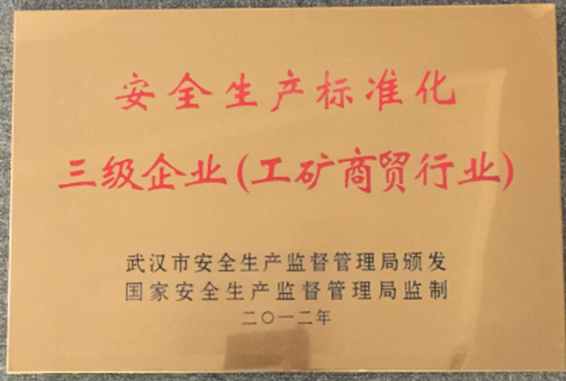 2012年武汉市安全生产监督管理局“安全生产标准三级企业”