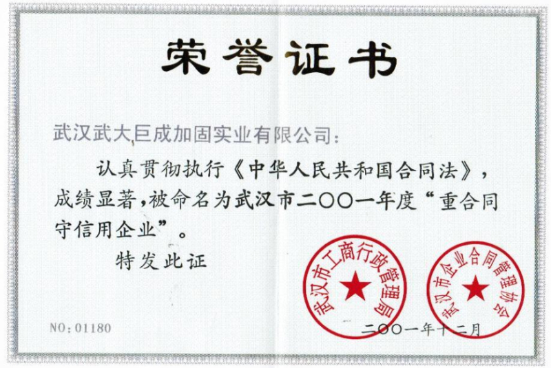 武汉市2001年度"守合同重信用企业"