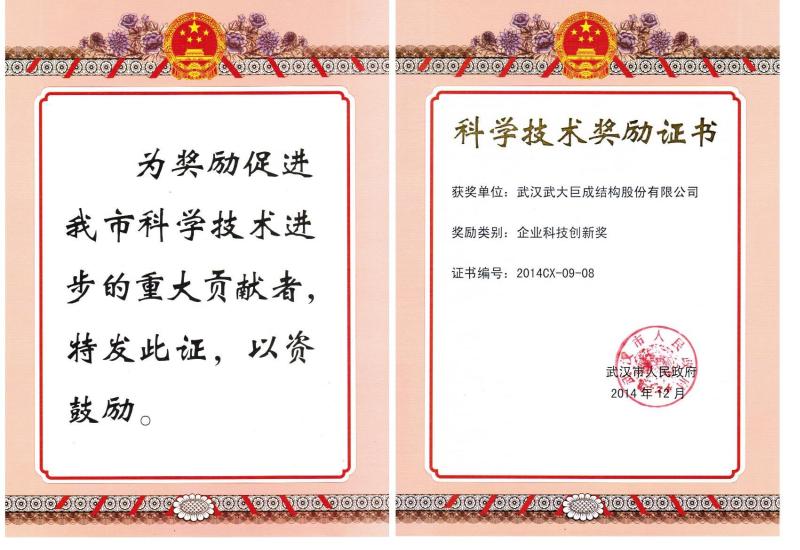 武汉市人民政府2014年企业科技创新奖