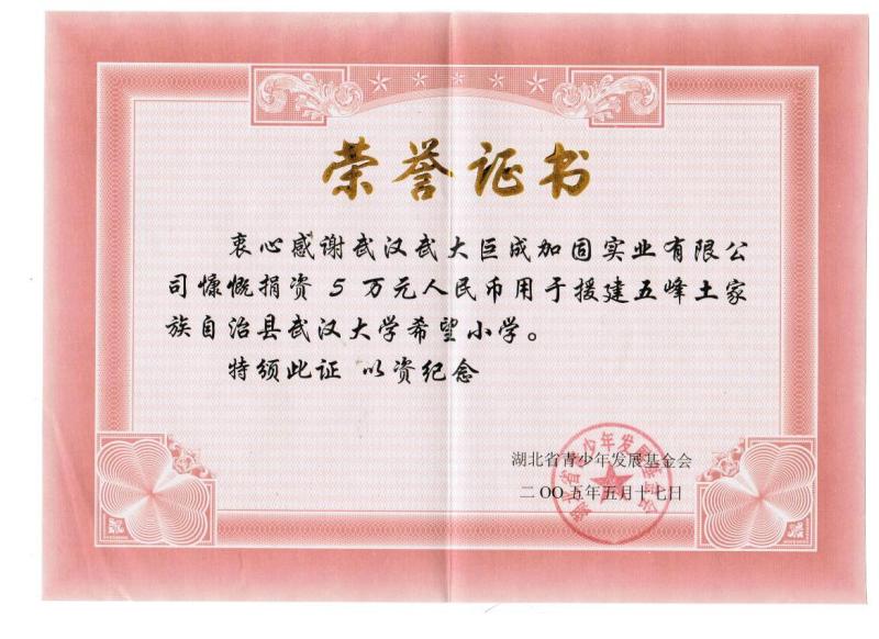 2005年援建五峰土家族自治县武汉大学希望小学