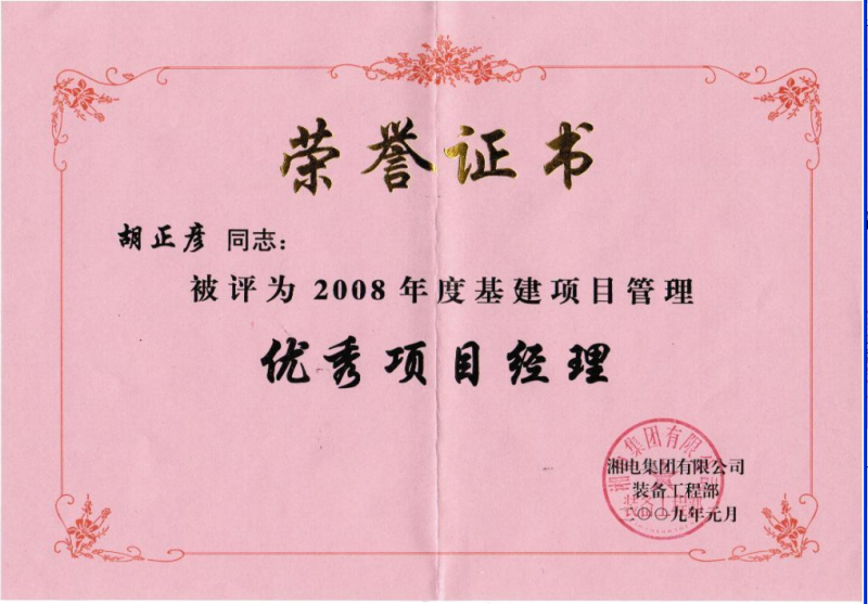 2008年湘电集团“优秀项目经理”