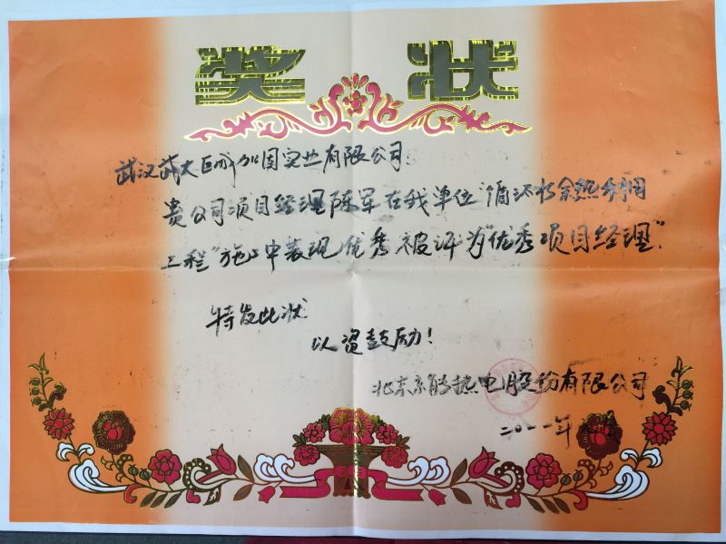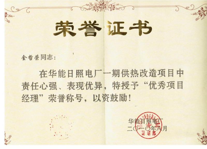 2011年北京京能热电“优秀项目经理”