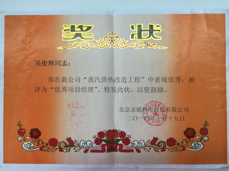 2010年北京京能热电“优秀项目经理”
