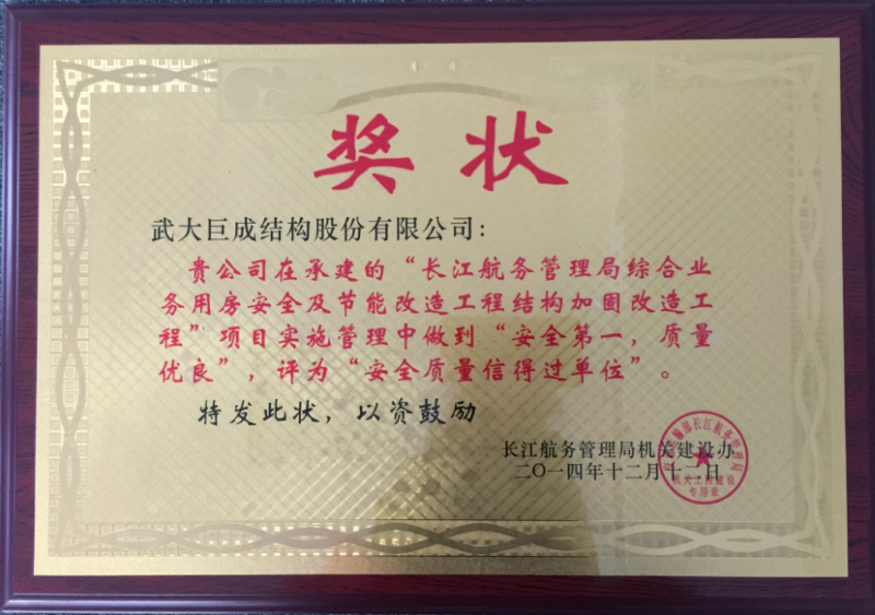 2014年长江航务管理局“安全质量信得过单位”