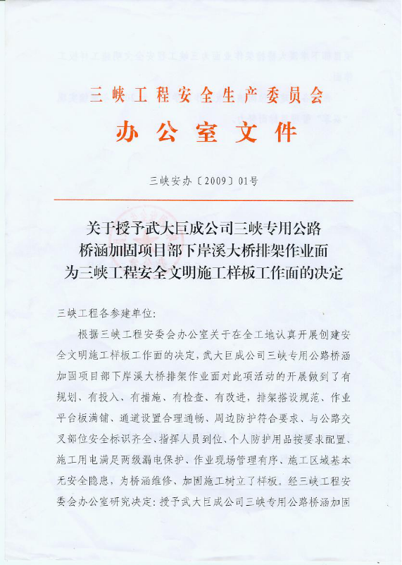 2009年三峡工程安全文明施工样板工作面
