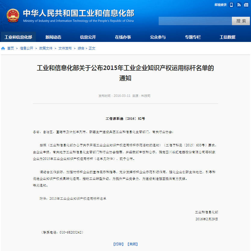 2015年工业企业知识产权运用标杆