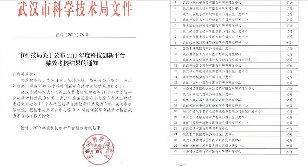 2019年度科技创新平台绩效考核结果——优秀