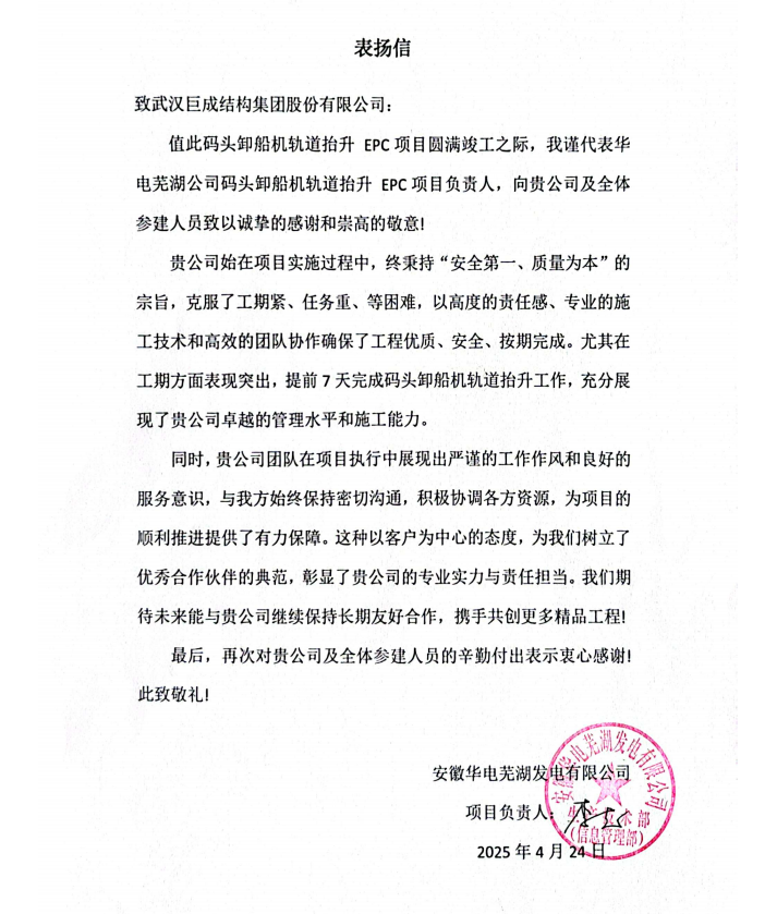 2025年安徽华电芜湖发电有限公司 表扬信
