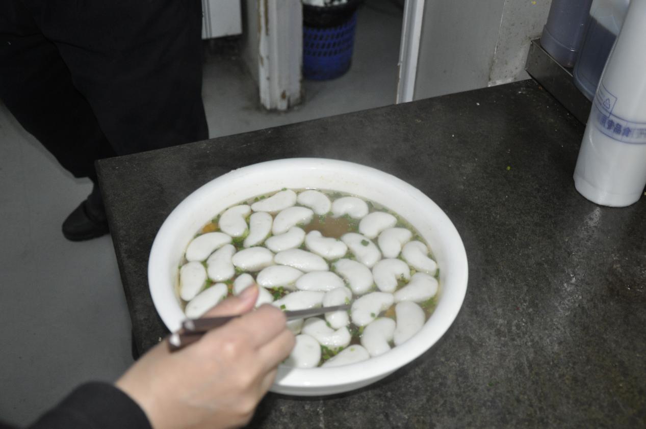 上午,管军章讲解了烹饪的主要流程、六个菜的烹饪方式和技巧及原材料、佐料、半成品、成品的正确保存,就怎样搞好工作区域内环境、设施、设备的清洁和安全,怎样控制成本、做好食品卫生与个人卫生等展开培训。针对在场人员提出的问题,管大厨作了通俗易懂、深入浅出的讲解。通过培训,大家对豆腐丸子、酸汤鱼丸、麻婆豆腐、红烧小尖圆、粉蒸肉、剁椒鱼头六个菜品的制作有了较为系统的了解,收获颇丰。
