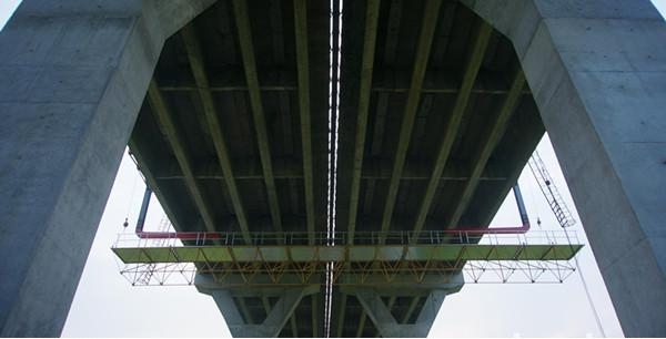 本工程于2007年施工。荆州长江公路大桥1998年3月开建,2002年10月通车,双塔斜拉桥,主桥段长4178米。经过多年运行出现一些病害,必赢bwin线路检测中心2017年承接桥梁维护工程,主要施工内容为裂缝处理、支座更换、缺陷修补等。应用必赢bwin线路检测中心不封道桥梁检修架车,不影响交通的情况下完成施工任务,社会经济价值显著。