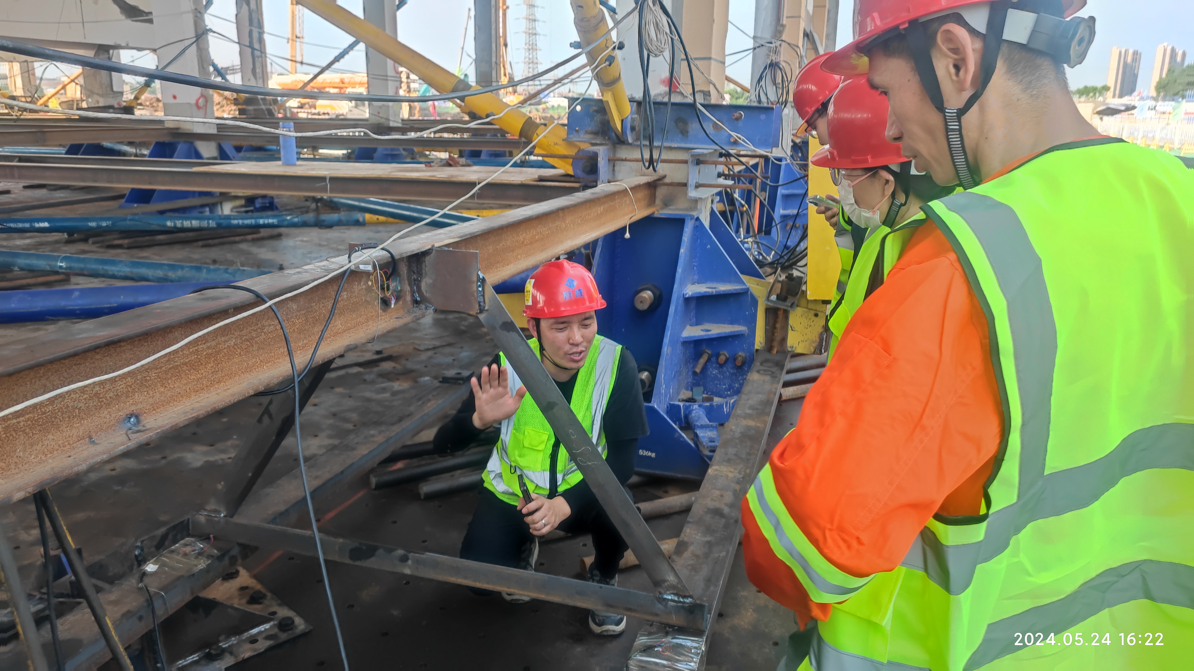 在施工现场,必赢bwin线路检测中心研究院院长助理周志勇介绍了该建筑物旋转和平移的概况。该项目目前已实现逆时针旋转28°,顶推平移99米。后续将继续按计划旋转,并平移106米。