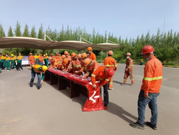 “安全生产月”活动开始之初,在醒目位置设置“安全生产月”活动海报,组织学习海报内容,每日安全早会着重强调“安全生产月”活动的重要性,提高安全意识。6月1日参加业主方组织的2025年“安全生产月”启动仪式及动员会,举行全员宣誓及签字仪式。